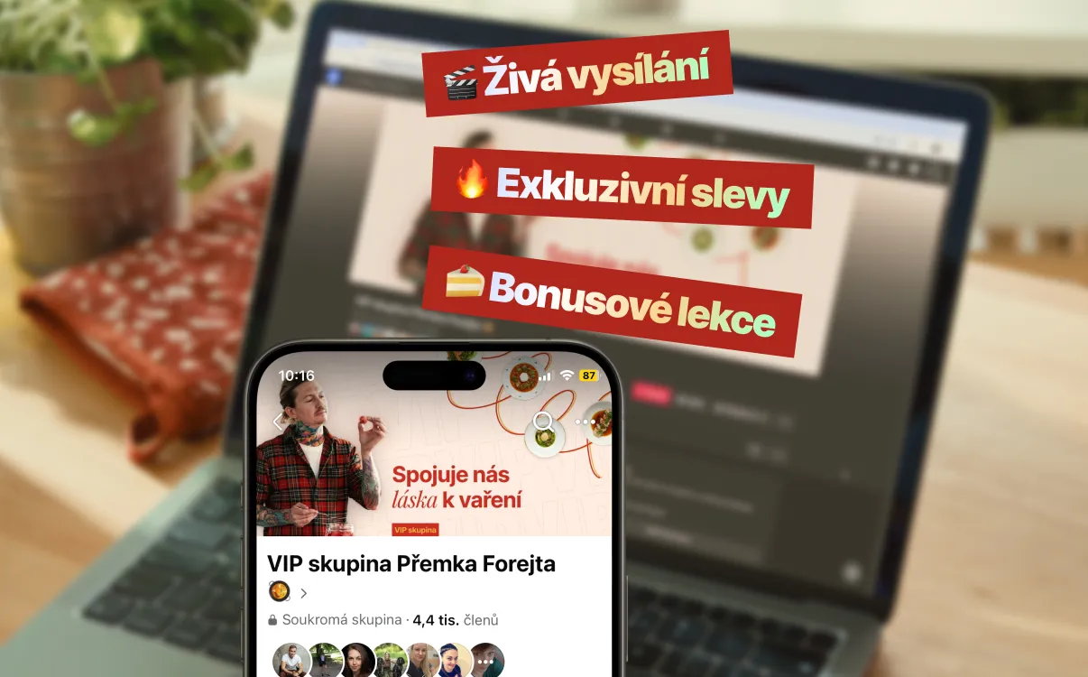 V naší VIP skupině společně sdílíme recepty a společně vaříme v pravidelných live streamech.
